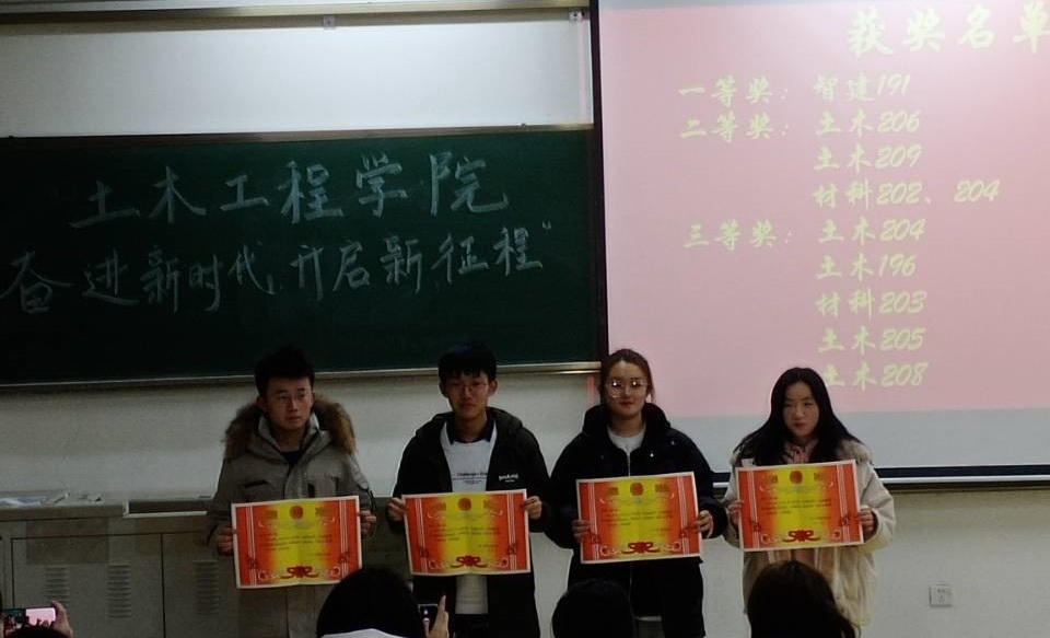 1月8日下午,土木工程学院于嘉陵江路校区开展“奋进新时代,开启新征程”十佳主题微团课颁奖典礼,学院2020级各班团支部成员参加仪式。